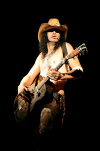 Well, one night, in a place that is only my business, I performed the ritual. I sacrificed Legba and called him to please tune my guitar and help me get good. And I don’t know if it was the alcohol or other ingredients, but Legba and the Haints (spirits of the night) appeared to me and I made my pact. It was all a long time ago, but two things about the legend have come true… I learned to play the blues guitar, adopted the stage name „Legba“ Haints, and since that night, the hellhounds who have me pursue.