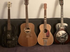 basically derived from the, the old masters of the Delta and Piedmont Blues. And I like to mix elements of Cajun or Country with it. This results in what I call the voodoo blues. It is played almost exclusively on original instruments from around 1930-1960. Today I no longer use electric guitars, but only play acoustic and resonator guitars from exactly that time. Some of the guitars are electrified. In the following I would like to bring you a little closer to my style of music and its influences.